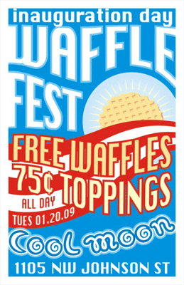 I have to work tomorrow. So, no inauguration for me. However. I will be celebrating with free waffles at Cool Moon Ice Cream tomorrow night.